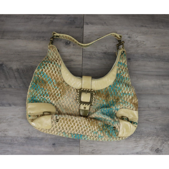 Babee D by Dayme Weaved Leather Shoulder Bag Purse with Buckle Turquoise