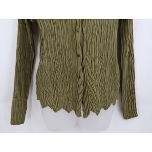 Babette Crinkled Stretch Snap Front Long Sleeve Blouse Shirt Top Size S Green