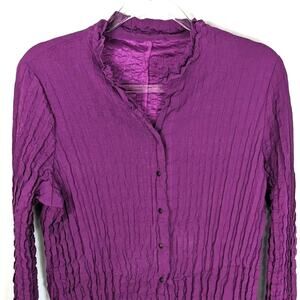 Babette Fushia Snap Front Crinkle Pleated Long Tunic Shirt or Mini Dress Small