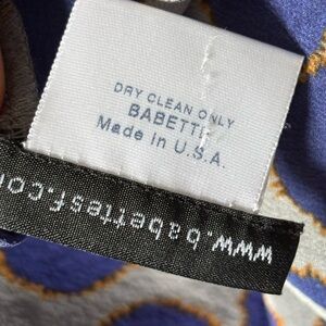 Babette Polkadot Silk Button down Blouse . Gray with large blue polkadots. Hidden buttons. Exquisite material and construction. Size small. Very good condition.