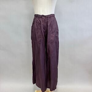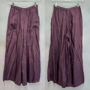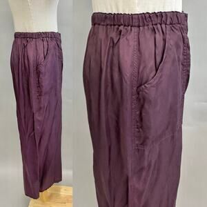 Babette SF satin burgundy wide leg ankle pant size Small Rayon elastic waist
