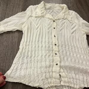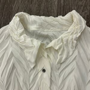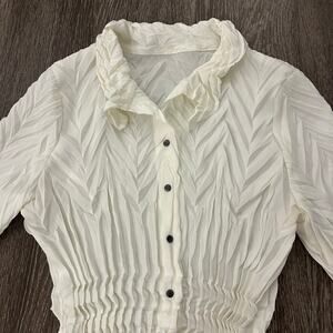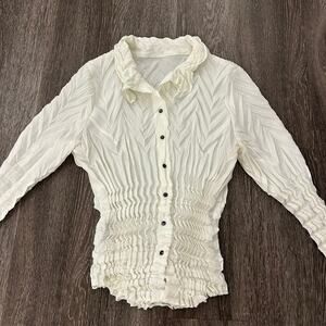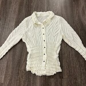 Babette Vintage Ivory Micropleat Button Front Top XS Long Sleeve Sculpted Blouse