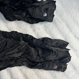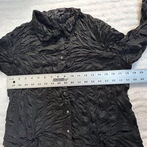 Babette Womens Black Textured Crinkle Button-Up Shirt Small Long Sleeve Casual