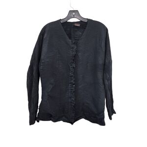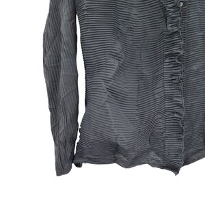 Babette Women's Poly Plisse Ruffle Button Front Top - M