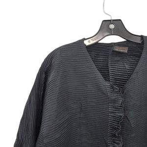 Women's Poly Plisse Ruffle Button Front Top from Babette in Black