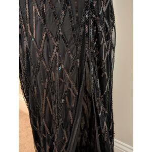 Babeyond Suspender High Slit Maxi Cocktail Dress Beaded 1920's w/Headpiece S
