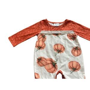 Babies 0-3 Months Long Sleeve Crew Neck Orange and Tan Pumpkin Ruffle Romper
