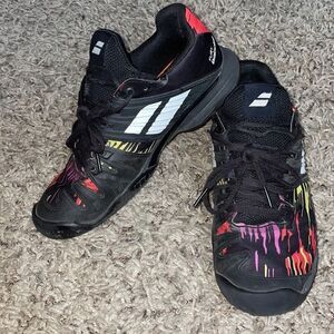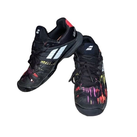 Babolat Fury Tennis Shoes Black & Neon Yellow Orange Violet