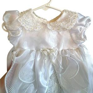 Baby 0-3 mo Alegria baptism gown w embroidered Mary. Like new cndtn.