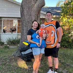 True to size if not a little big. Could easily fit an average baby from 3m up to 12m, worn once on Halloween and dry cleaned.