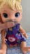 Adorable Baby Alive blonde doll, perfect for little ones who love nurturing play. She measures approximately 11” tall and 2.5” wide, making her the ideal size for small hands. This sweet doll makes sounds and talks when you insert the pacifier into her mouth, bringing playtime to life. She comes dressed in her original outfit and includes her matching pacifier.