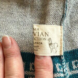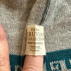 Baby Alpaca Pompom Beanie Hat Peru Teal Gray ENMA Peruvian A Collection Warm Soft Winter Geometric
