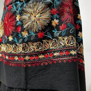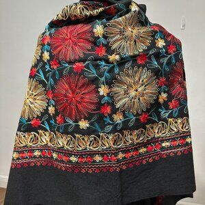 Baby Alpaca Shawl / Wrap in Black with Multicolor Embroidery – Made in Peru New