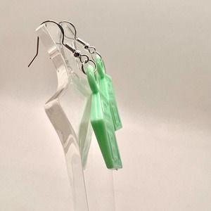 These earrings are made of plastic with metal hooks.