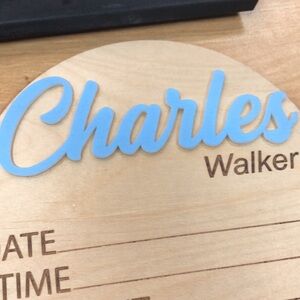 - Enter your baby’s name in the personalization section, along with your color selection for the name, if you choose acrylic