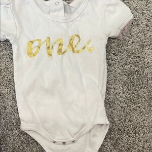 Charming white bodysuit with gold 'one' design. Ideal for celebrations.