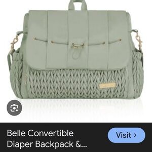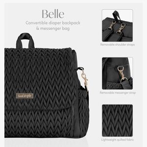 Hannah & Sophia Belle Convertible Diaper & Messenger Bag comes with a large storage space, 3 zippered pockets, 4 outer pockets (can be used as storage for backpack straps) and 5 inner pockets.