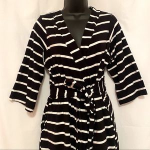 Pockets on both sides, feminine & practical. Attached belt helps easy sizing down from bump to nursing mama. Machine washable.
