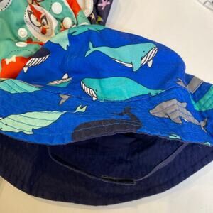 Baby reusable swim diaper bundle assorted sizes & designs. 3 small fits 0-8 months, 10-19 lbs; 1 12 months, 18-22lbs; 2 large fits 9 months-3 years 20-40 lbs. 5 of the swim diapers have adjustable snaps and inner mesh. Finding Nemo baby size 8 water shoes. And, Velcro strap whale sun hat by Cat & Jack 6-12 months.