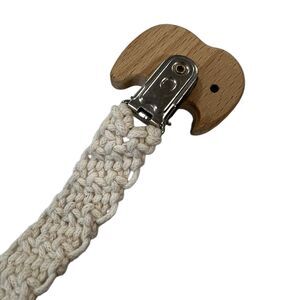 Baby Beige Macrame Braided Crochet Wooden Elephant Pacifier Clip