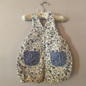 Baby B'gosh Girls' 18 Month Vintage 90s Blue White Teacup Floral Overall Romper