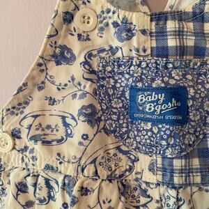 Adorable Baby B'gosh overall romper, perfect for your little one! This vintage 90s piece is a delightful addition to any baby's wardrobe. The romper features a charming blue and white colorway with a teacup and floral design.