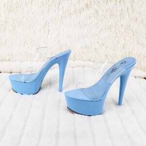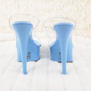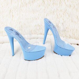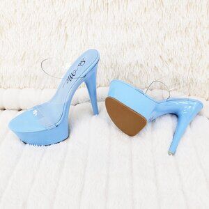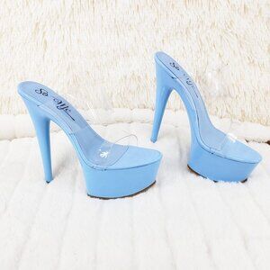 Baby Blue 2 Strap Clear upper Platform 6" Heels