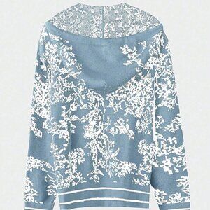 Baby Blue Casual Women's Printed 2-Piece Sweater Set