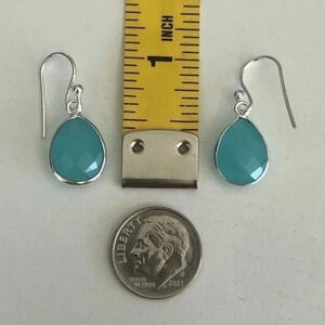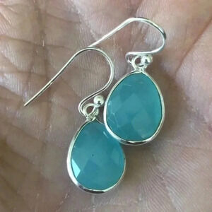 Baby Blue Chalcedony Beveled Teardrop 925 Sterling Silver Handmade Earrings NWT