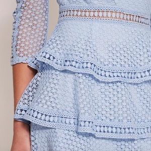This gorgeous baby blue crochet dress is brand new. Never worn with tags on. Size is S-M will fit sizes 2-4. I'm in love with this dress but I ordered 2 and only one fits me. Trust me this is a beautiful, girly and flirty dress. Perfect for the fall. I'm a fashion stylist and this gorgeous crochet dress will get you lots of compliments.