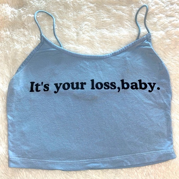 “It’s your loss baby” cute baby blue crop tank top. Only been worn a couple times. Super soft 💙