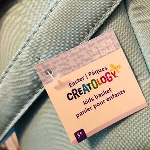 Baby Blue Easter Bunny Fabric Basket w/ Gingham Lining and Wired Ears. In new condition with tags. Measures around 10 inches tall with handles and 10 inches in diameter.