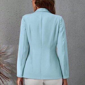 Baby Blue Elegant Women's Solid Color Double-Breasted Suit Jacket