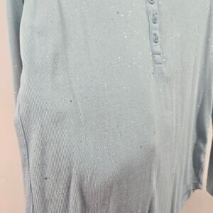 Baby Blue Y2K Glitter Henley Top Size LG Casual Cozy Comfy Lounge Basic Layer