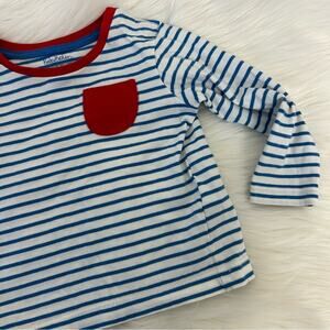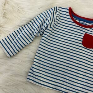 Baby Boden Blue & White Stripe Long Sleeve Pocket Tee Size 6-9 Months