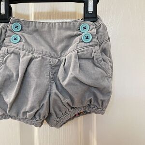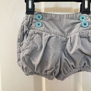 Baby Boden Gray Corduroy Bloomer Shorts Buttons Cotton Girls Size 12-18 Months