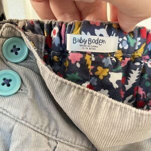 Baby Boden Gray Corduroy Bloomer Shorts Buttons Cotton Girls Size 12-18 Months. So cute! Fully lined, corduroy outside and soft cotton lined inside. Floral and animal print lining. Pockets on the front as well as a quartet of contrast buttons. Have been worn, but no issues that I can find. Very Good Used Condition.