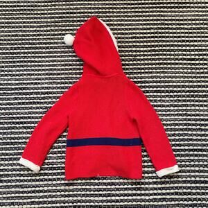 🌿Baby Boden Holiday Santa Hooded Red Knit Button Cardigan Sweater 3/4 Y