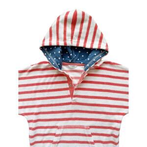 Baby Boden coral and white striped terrycloth hooded swim cover. Snap closure. So soft! No snags or flaws. Size 3-4y. 83% cotton, 17% polyester.