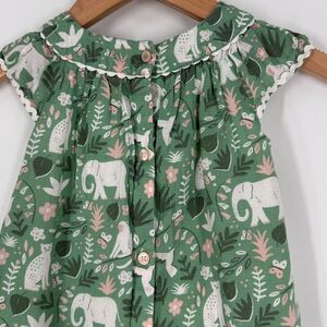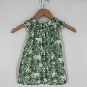 Baby Boden dress, jungle animal dress, toddler dress, elephants dress, monkeys and birds dress, girls 12–18 months, green cotton dress, boutique baby clothes