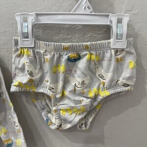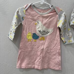 Baby Boden (Mini Boden) long sleeve dress & bloomers size 6-12 months. Light pink bodice with mama chicken and baby chicks appliqué on front and bird print on arms and matching bloomers. So cute!! Good condition for age and some appliqué curling.