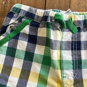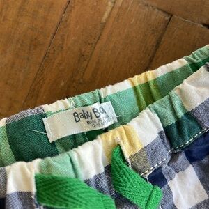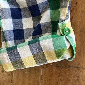 Blue linen blend Lined Elastic leg Snap closure at leg No holes or stains