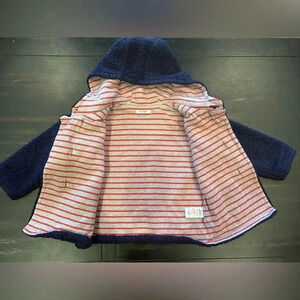 Adorable blue teddy fleece toggle jacket with hood. Has two front pocket. No flaws observed, offers welcomed.