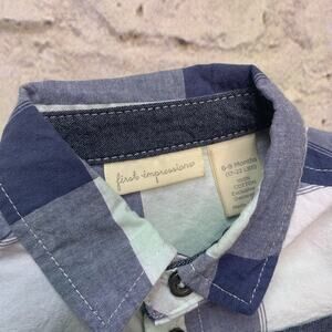 Size 6-9 months First Impressions Baby Boy Button Down. EUC- worn 1x for pictures! The CUTEST shirt!