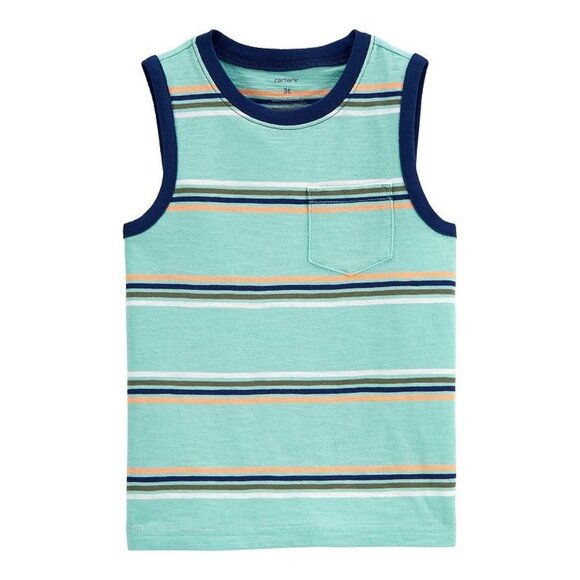 This Baby Boy Carter's Striped Pocket Tank Top in turquoise stripe is perfect for your 3-month-old boy. Stylish, comfortable and easy to wear, it's the ideal choice for summer.