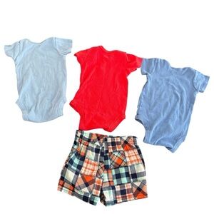 Baby Boy Clothes 3-6M Bundle Set 4PC Plaid Shorts Onesies Gerber Cutie Pie
