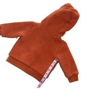 - A warm orange zip-up hoodie with pockets in size 6-9 months. (Mac & Moon)
