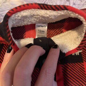 Adorable red plaid, fleece sweatshirt. Half button with high collar. Perfect for the colder months! Excellent condition!
