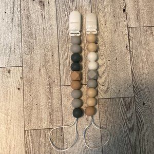 Baby Boy & Girl 2 Pack Silicone Bead Pacifier/Teether Toy Clip