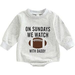 *Design:Cute infant baby boy girl "On Sundays We Watch Football with Daddy"letter and football exquisite printprinted pattern sweatshirts romper,long sleeve crewneck pullover sweatshirt top,neutral infant sweatshirt romper,boutique baby girl boy fall winter clothes,loose crotch snaps for convenient diaper change and baby feels more comfortable,simple